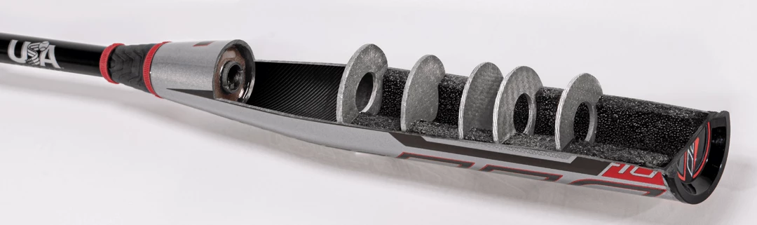 This Quatro Pro USA baseball bat was meticulously engineered using an internal carbon-fiber multi-disc system that delivers performance like no other bat at this level. Its unique sound is sure to turn heads, especially as spectators watch the ball explode off its massive barrel. The sound you hear is the sound of technology at work; the, ‘Sound Of Performance.’ In addition, the stylish silver, black, and red design is sure to make people notice every time you walk up to the plate.