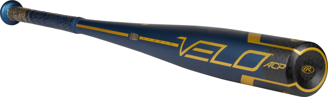 The 2022 Rawlings VELO ACP Hybrid Baseball Bat offers a newly designed profile for a longer, flatter barrel and thinner handle then years past. Two inches of Accelerated Carbon Composite at the end of the barrel was designed to create the lightest swing weight possible.Â
