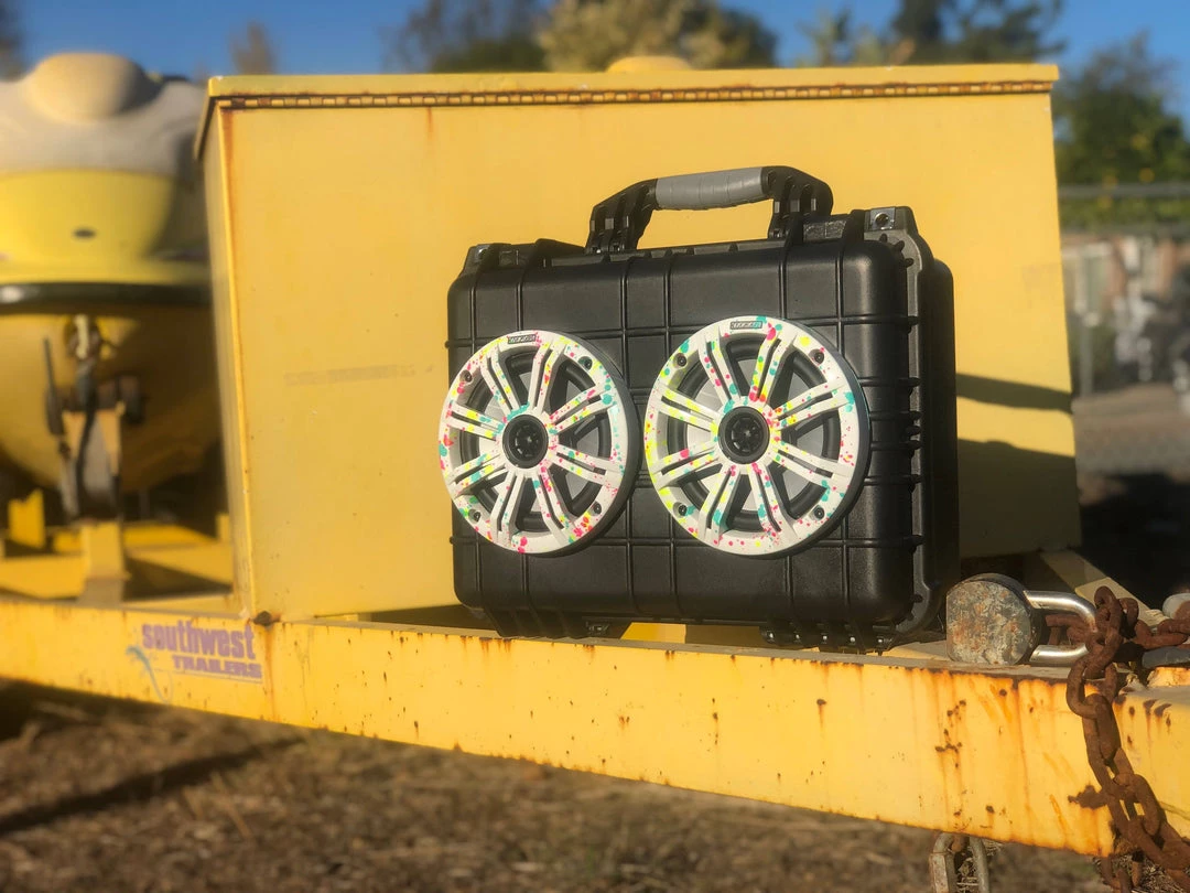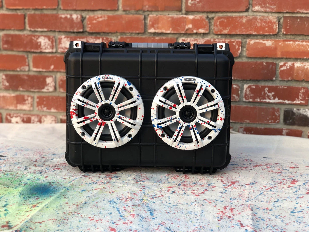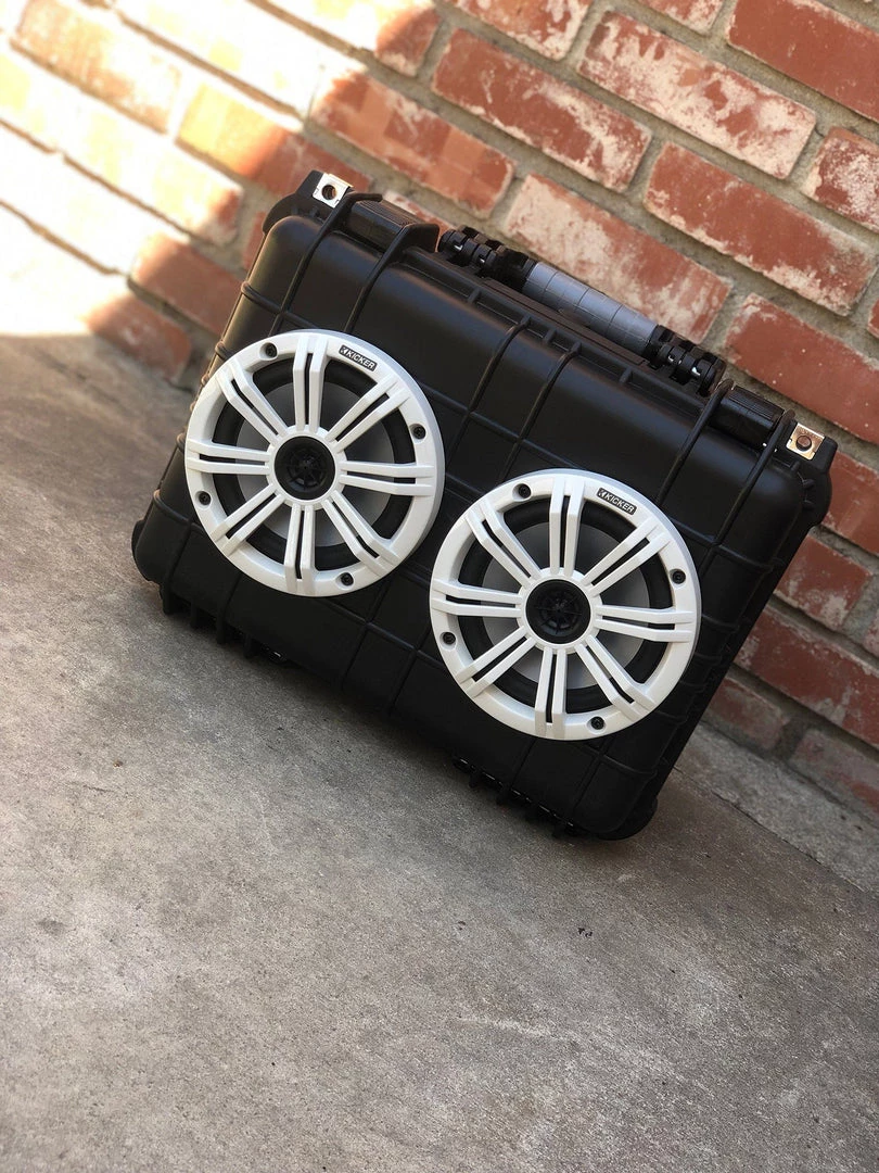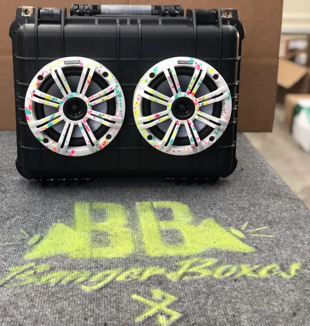If you’re looking for a Portable Bluetooth Speaker that will blow all the others away, look no further! The Headbanger Sports “Banger Box” is sporting two twin 6.5” 2-way Kicker Marine Speakers with 400 watts of power all packed in a easily portable rugged case that’s ready for any outdoor activity.