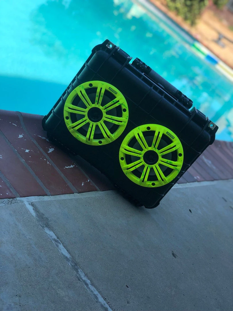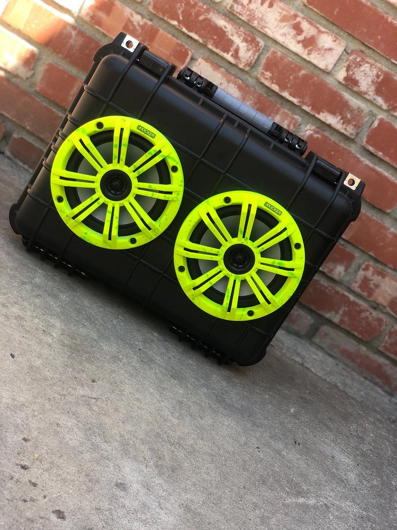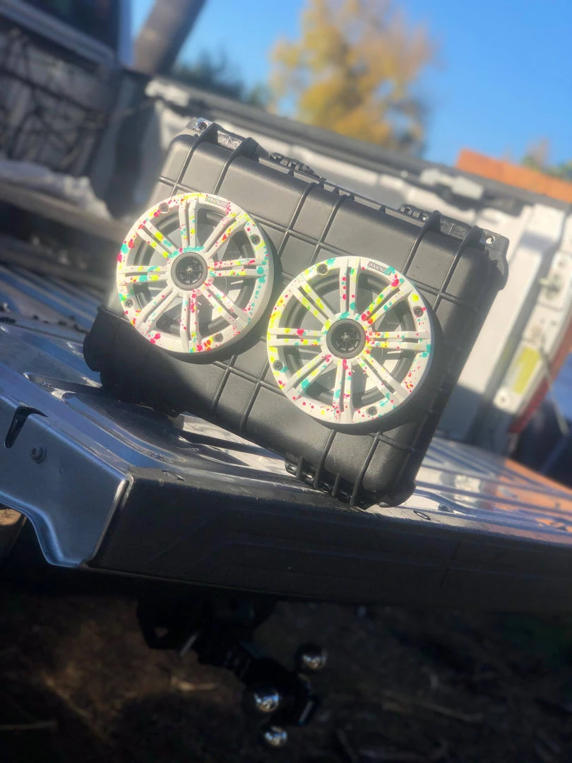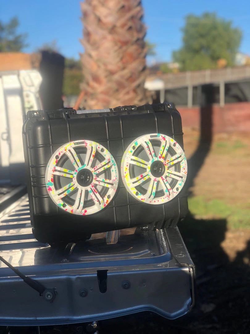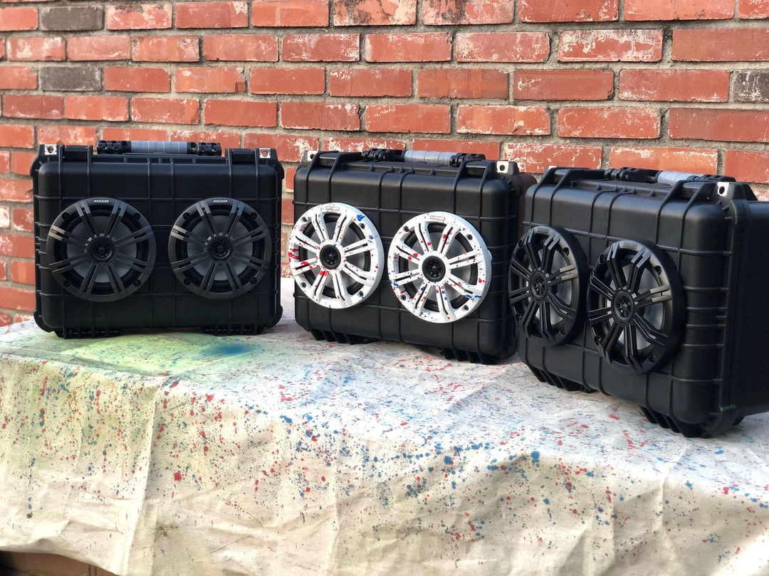 If you’re looking for a Portable Bluetooth Speaker that will blow all the others away, look no further! The Headbanger Sports “Banger Box” is sporting two twin 6.5” 2-way Kicker Marine Speakers with 400 watts of power all packed in a easily portable rugged case that’s ready for any outdoor activity.