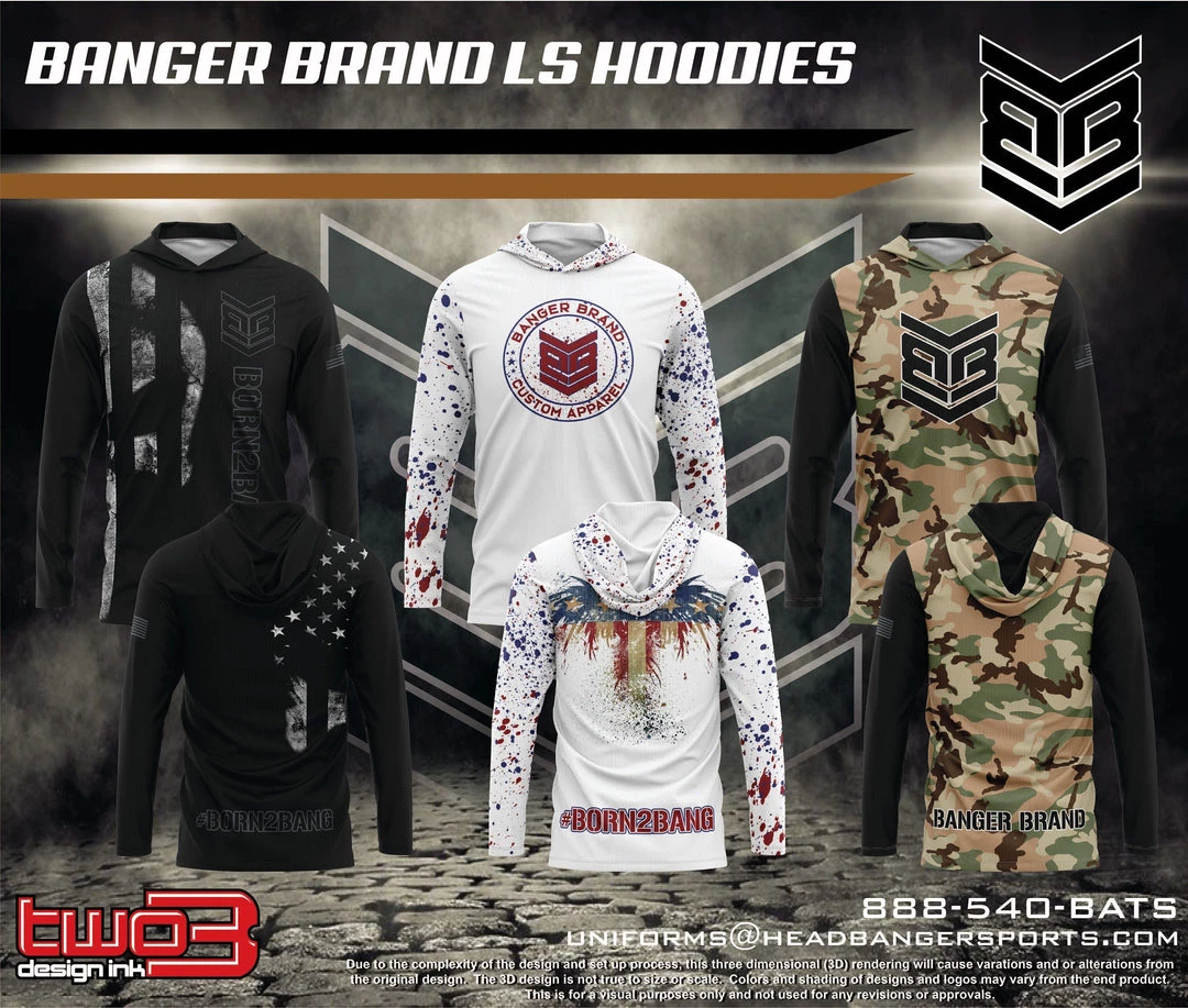Banger Brand Custom Apparel introduces our all new lightweight long sleeve hoodies. These look great whether your on the field or not. Super comfortable lightweight material with a mesh lined hood and drawstring. It’s time you show everyone you we’re #Born2Bang.