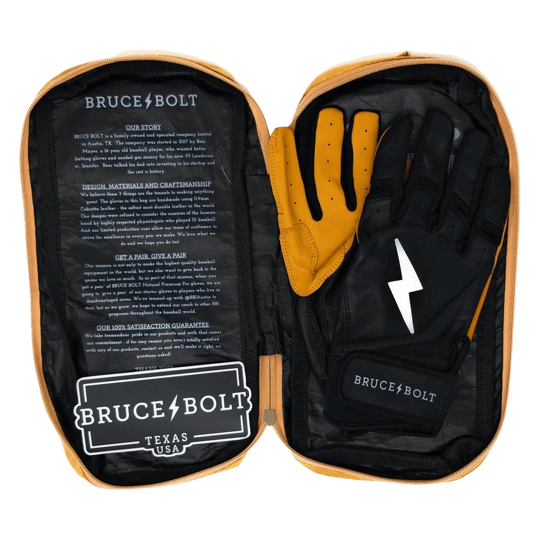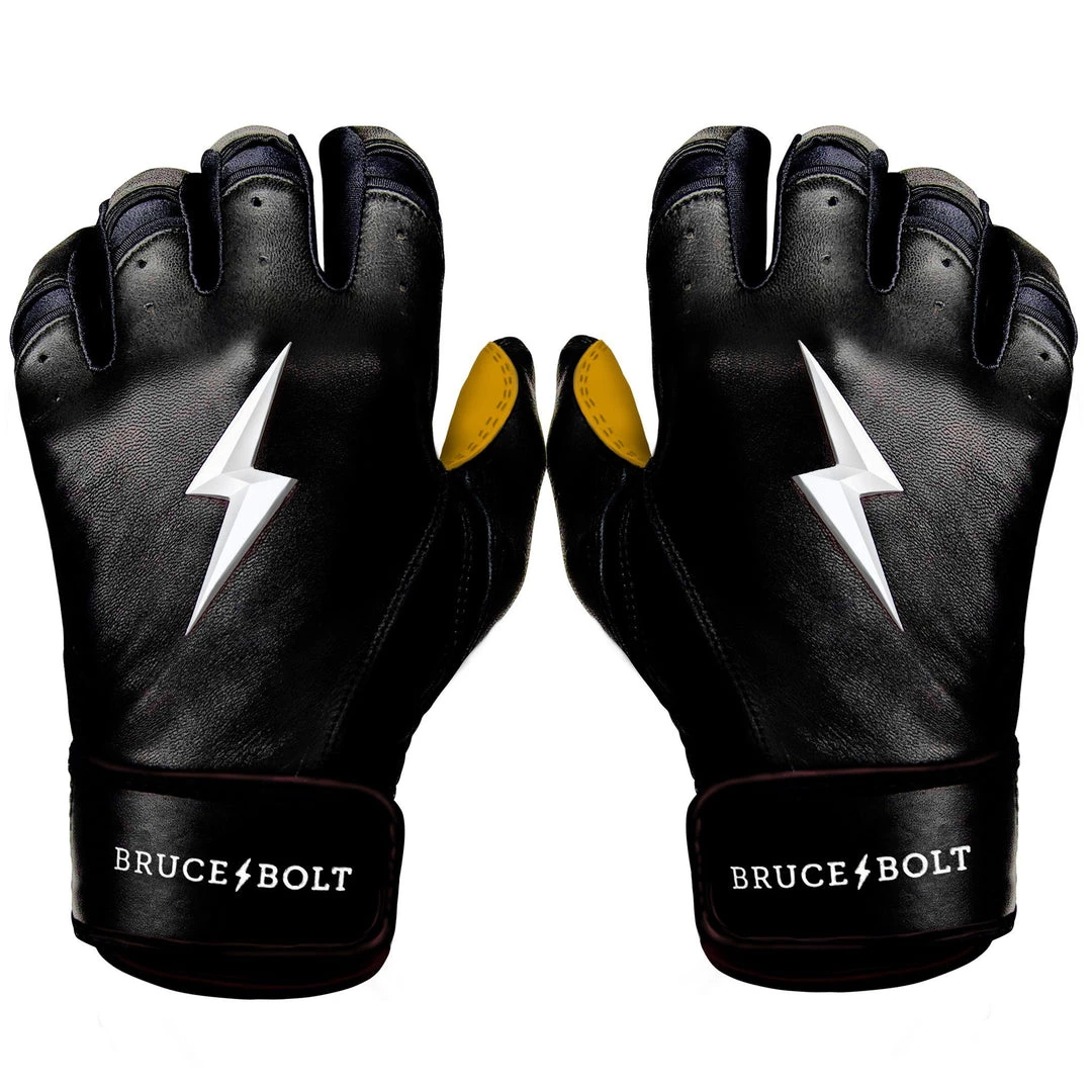 Each pair of BRUCE BOLT Black batting gloves are handmade by skilled craftsmen using only the highest quality 0.9mm Cabretta leather and stitching techniques which makes Bruce Bolt gloves buttery soft but more durable than any other glove on the market.