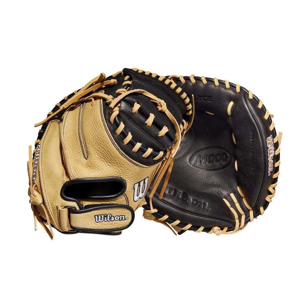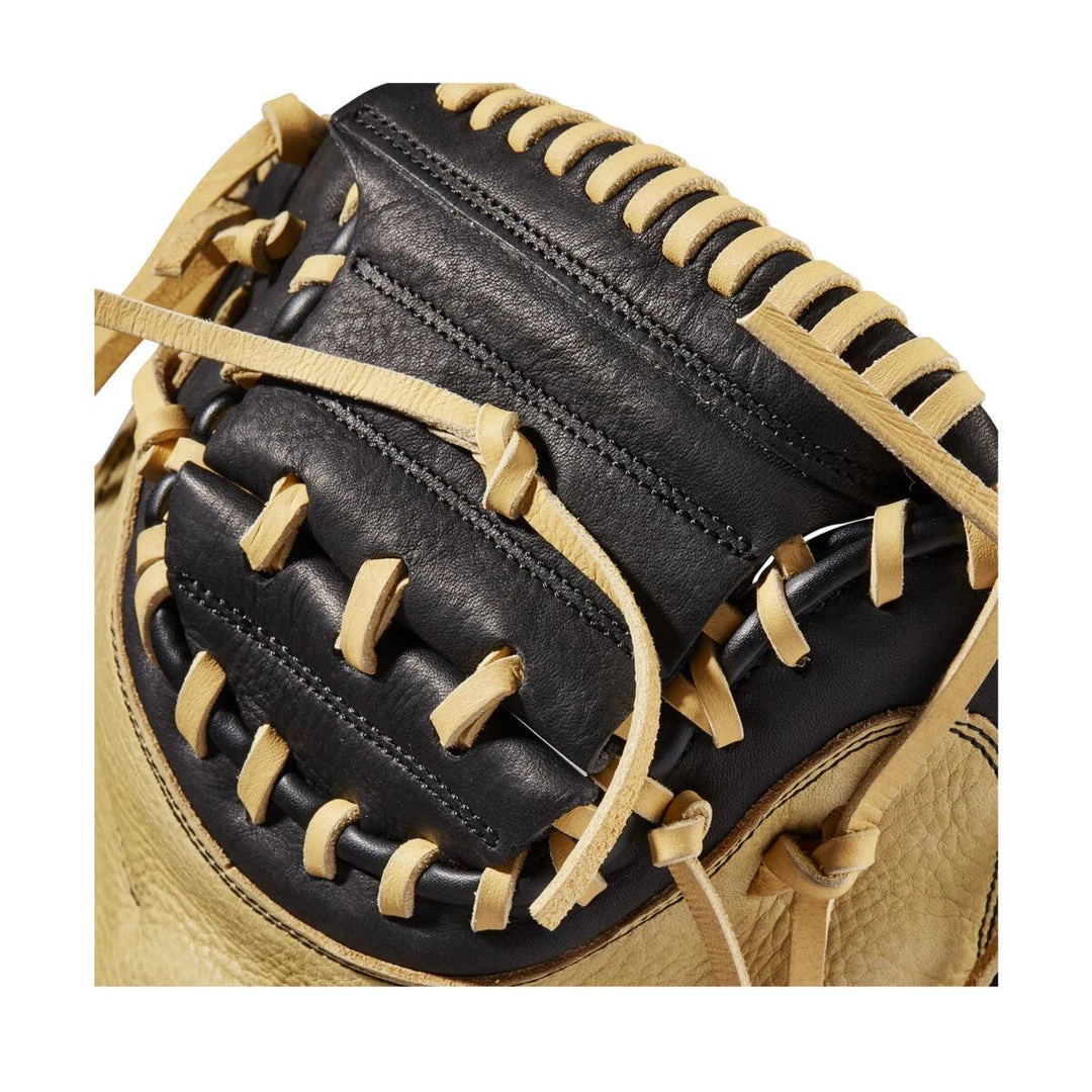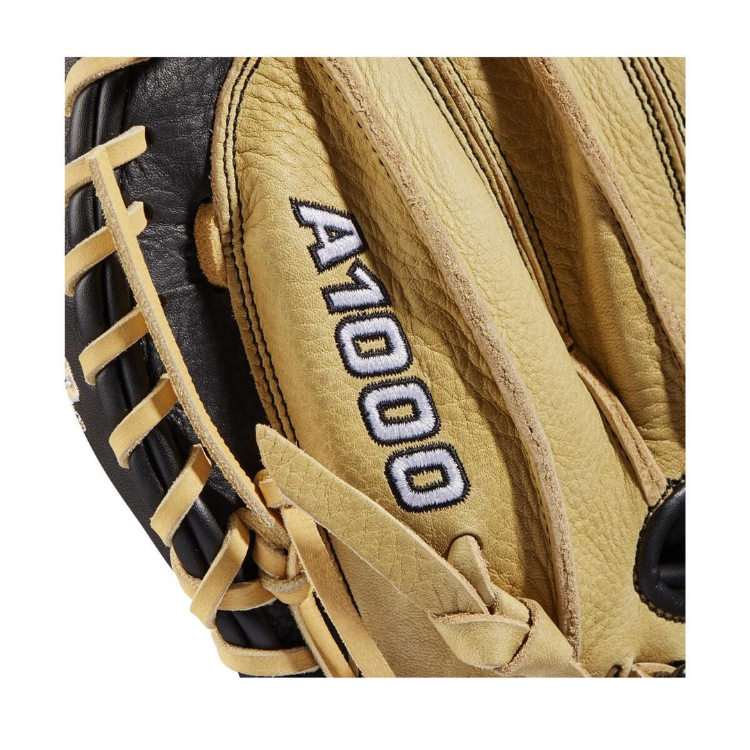 Frame every pitch on the black and block any ball in the dirt with the A1000® 33” Catcher’s Mitt. A Half Moon Web allows for easy receiving and quick transfers, and the Black and Blonde Full Grain leather delivers durability and structure to set the target behind home plate.