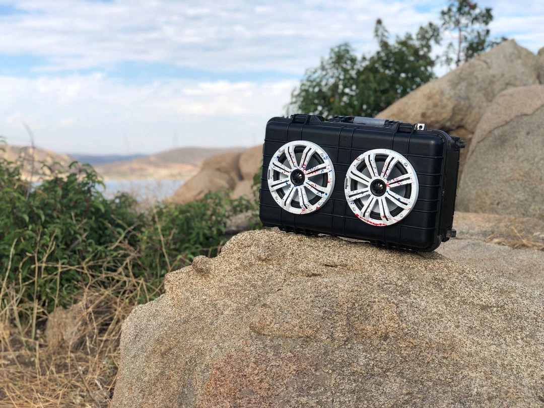 The Banger Box XL is our biggest and loudest speaker box to date. This Waterproof bluetooth speaker is banging two Kicker Marine Grade 8” 2- way speakers and over 400 watts of power. It is the perfect speaker for any outdoor event, and if your looking to get the cops called on your house party, say no more this is the one.Â