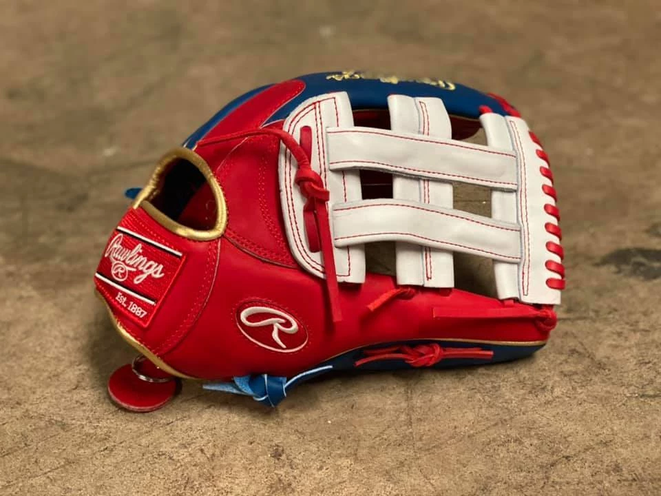 This 13″ Rawlings Heart of the Hide H-Web is out of our HB Private Stock. It’s designed with Rawlings PRO3030 Pattern for a large pocket, large hand stall, and will help snag all of those hard hit balls in the infield and outfield. The Red, White, and Blue build with Gold accents lights up the field and is as flashy without being flashy as it gets. All of our Private Stock gloves ship fast and free!Â