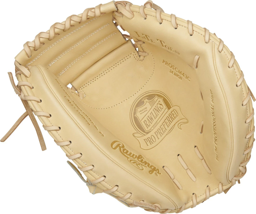 This clean, camel Pro Preferred catcher’s mitt is designed for elite catchers looking for a glove that can perform to their abilities. See why more pros choose Rawlings than any other brand, buy now right here at headbangersports.com with our fast free shipping!Â