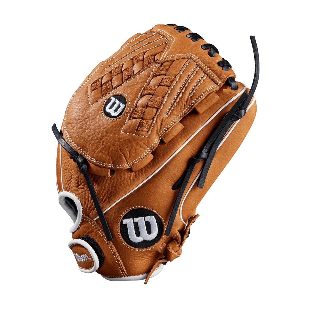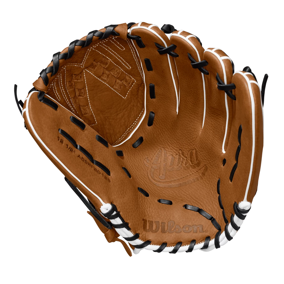 This Wilson Aura 12.5″ Fastpitch Softball Glove (WTA09RF20125) features a 12.5-inch pattern, Wilsons Beautiful Victory Web, and a comfortable wrist closure. This particular Aura is for a softball player looking to play in the outfield or looking for a larger infield glove. Built with a full-leather shell and full-grain laces the Aura promises to outlast the competition.Â