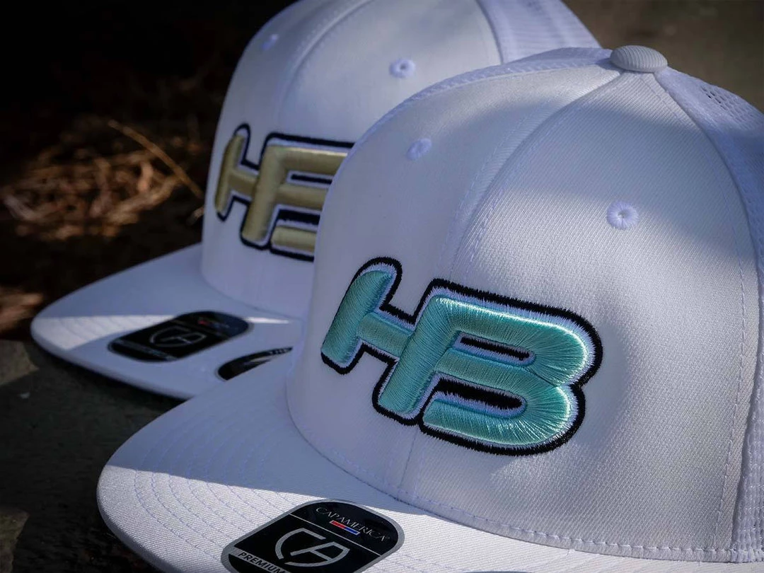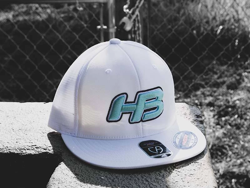 HB Sports Apparel Headbanger Sports I8501 Cap America Flexfit Performance Trucker Mesh Back Hat: White & Tiffany Blue
