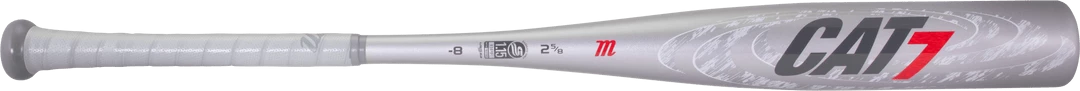 Shine at the plate with the CAT7. The 2020 Marucci CAT7 -8 Senior League Baseball Bat is built to explode with unrelenting fury, now in a new silver color way. The precision-balanced barrel and one-piece alloy design offer a clean, consistent swing to control the wrath of this ultra-responsive rainmaker.