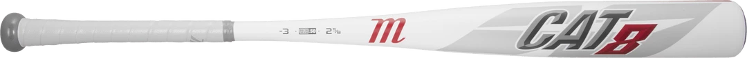 This 2018 Marucci CAT8 BBCOR baseball bat features a -3 length to weight ratio and a 2 5/8 inch ring-free barrel construction, important for increased barrel flex and reducing the likelihood of dead spots, so every ball you hit can travel high and far. The barrel is also precision-balanced for a lower M.O.I, resulting in a lighter feel as you swing and giving you better precision and control. Its one-piece alloy construction provides a clean, consistent swing, and the tapered handle with its soft-touch grip is topped with an ergonomic knob shape for more top-hand control and comfort while you’re at the plate. This bat is BBCOR certified for high school and collegiate baseball play.