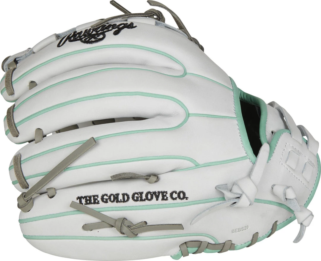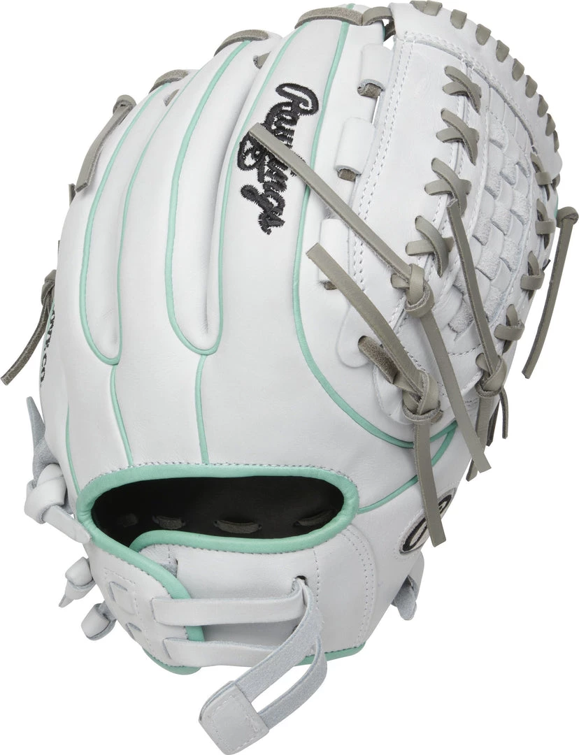 The 2021 Heart of the Hide 12-inch softball glove was artfully crafted using our 71-pattern. This popular softball pattern was designed specifically for the fastpitch player, to provide a better fit and feel – and deeper pocket. It’s crafted from our legendary HOH leather that’s world-renowned for its durability and performance. This white glove has the perfect touch of color, with beautiful ocean mint binding and welting. This blissfully compliments the basket connector web and gray lacing, to give you a subtle style all your own.