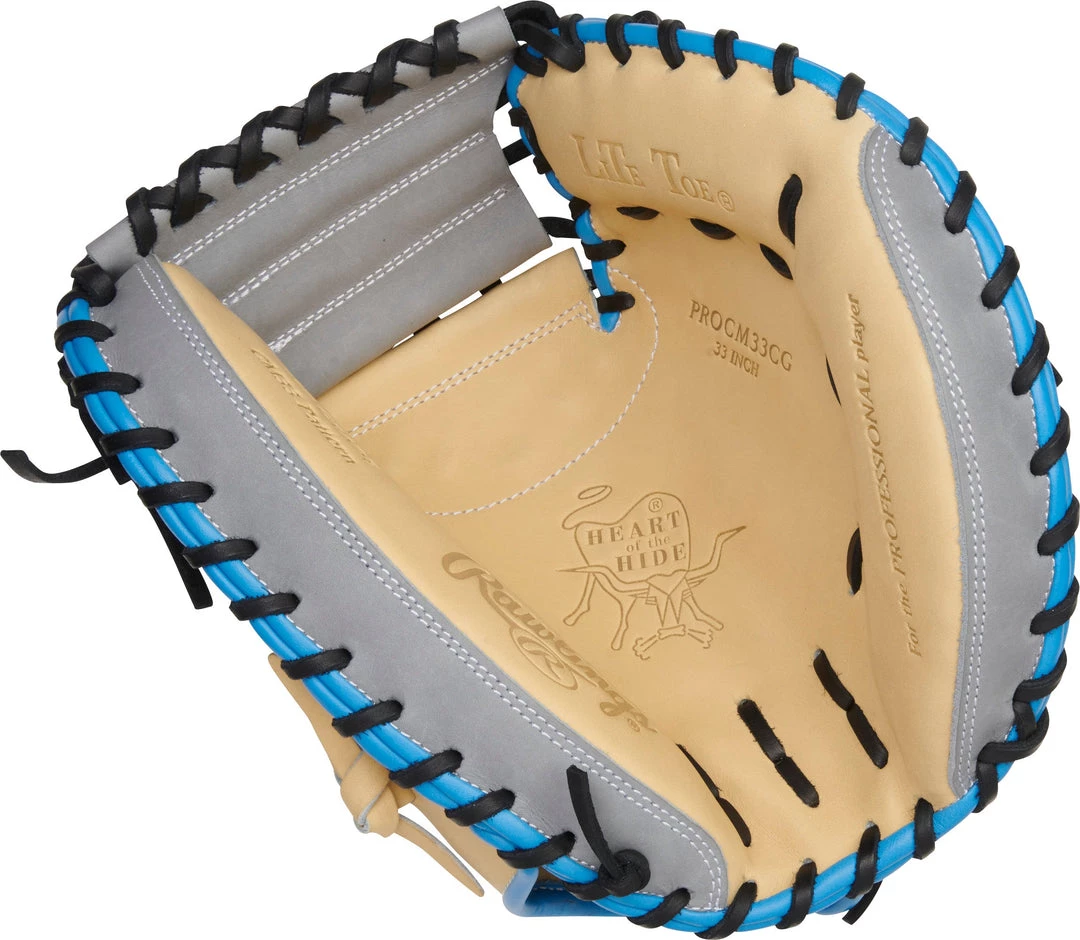 In addition, its deer-tanned cowhide lining, thermoformed wrist lining, and padded thumb sleeve give you a comfortable fit every time you put it on. The 33-inch CM33-pattern is one of our top catchers models, backed up by its performance at every level from travel ball to top MLB® pros. Its wide pocket and firm shape combine to give you greater glove control too! Frame pitches and steal strikes for your pitcher with ease when you don this unique mitt.Â