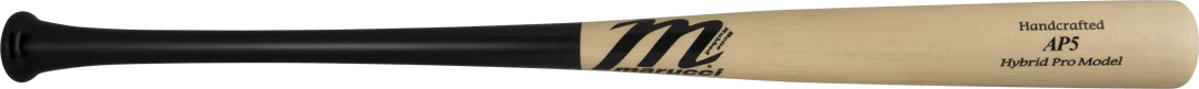 The AP5 Hybrid Pro Model, Marucci’s first wood composite hybrid bat, features a dual composite tube design for increased durability and performance, while the 100% maple exterior provides an authentic wood bat feel and sound. The popular AP5 turn model profile is built for power with a large barrel and slightly end-loaded feel.